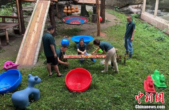 重庆:大熊猫享用“自助烧烤”过“六一”