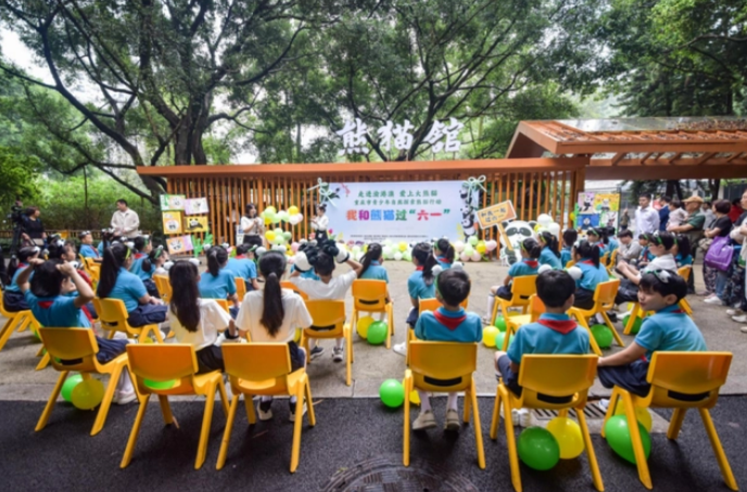 “六一”儿童节来临之际,5月30日,“走进渝港澳·爱上大熊猫”重庆市青少年自然探索熊猫行动走进了重庆动物园。“我和熊猫过六一”主题班会开启“云吸猫”模式。