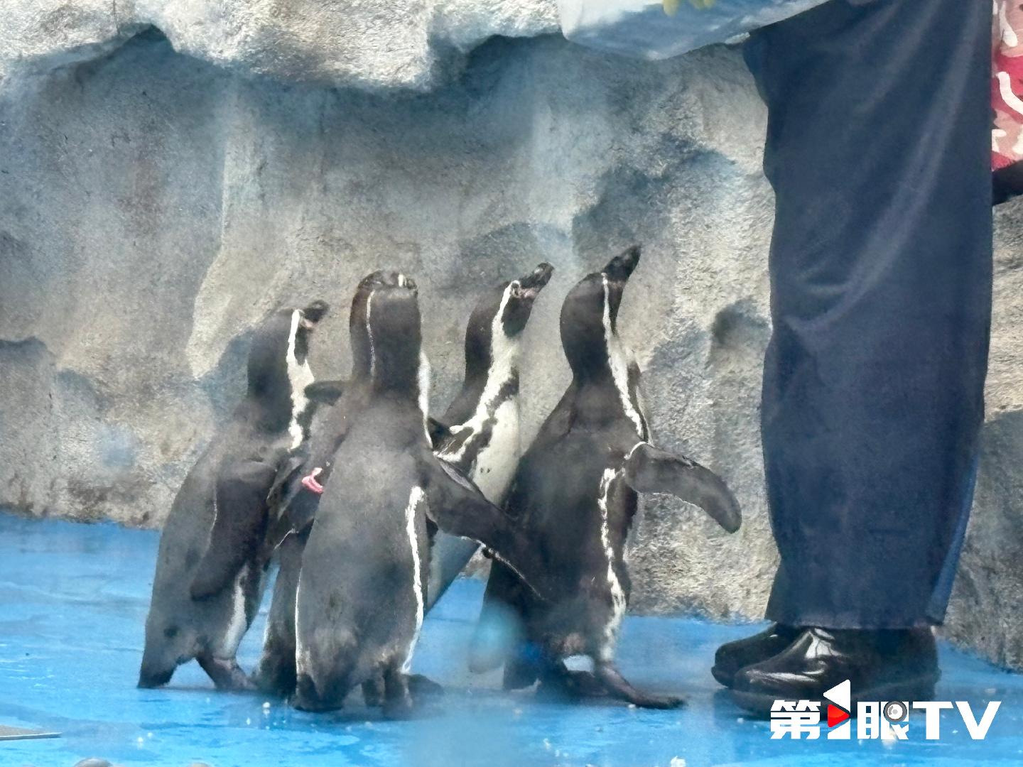 镜头转向企鹅馆,6只小巧玲珑的企鹅排着队争先恐后地干饭,那憨态可掬的模样,让人忍不住会心一笑。