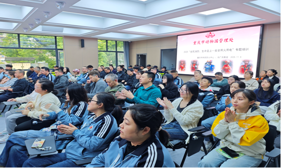 为进一步提高全处干部职工的消防安全意识,增强自防自救能力,避免发生火灾事故。结合全国第34个消防日,11月5日重庆动物园邀请重庆市利民消防宣传培训中心的冯广庆教官来园,以“全民消防、生命至上”安全用火用电为主题开展消防安全培训。我园全体行政办公人员,各部门一线在岗职工及各驻园单位代表共计105人参加了培训。