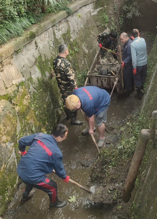 劳动现场,全体队员分工协作、干劲十足,手持铁锹、锄头、手推车等工具,有序推进各项笼舍环境清洁整治工作。针对小麂舍内老化丰容设施,及时进行拆除更换,同步规整杂乱活动区域;对亚洲象馆壕沟隔障开展专项疏浚,保障设施功能完好;集中清运梅花鹿舍活动场周边堆积的泥土及被动物弄乱的树干,还原整洁有序的活动场地。