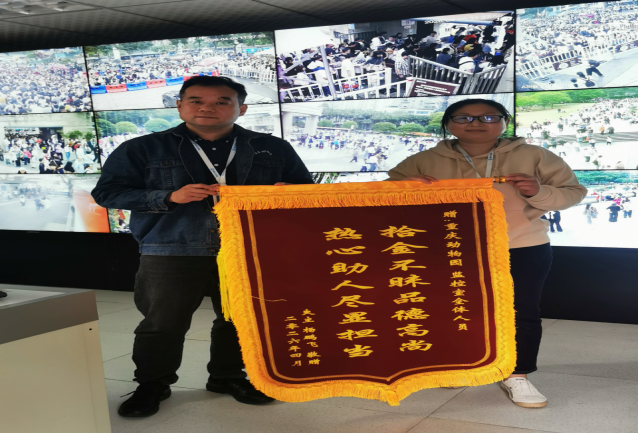 4月4日下午,一名外地游客到园区游玩时,在大门入口处遗失一部存有重要资料及支付功能的手机,随即向我处安全保卫科求助,称手机丢失将严重影响后续行程及财产安全。安全保卫科工作人员接到求助后,耐心安抚游客情绪,详细询问手机特征、遗失时段及定位功能开启情况,并迅速启动失物协寻机制。通过回看监控视频、沿线排查、反复广播失物信息等多项措施,快速锁定手机位置,成功为游客找回遗失手机。事后,游客特意赠送一面印有“拾金不昧品德高尚、热心助人尽显担当”的锦旗,对工作人员的热心帮助表示由衷感谢。